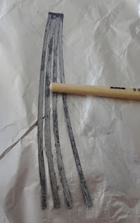 steel is gespleten komt een stuk touw (in mini naaigaren) dat strak om de
